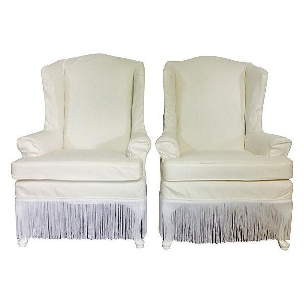 Related Images with 1970s Slipcover White Wingback Chairs A Pair Chairish